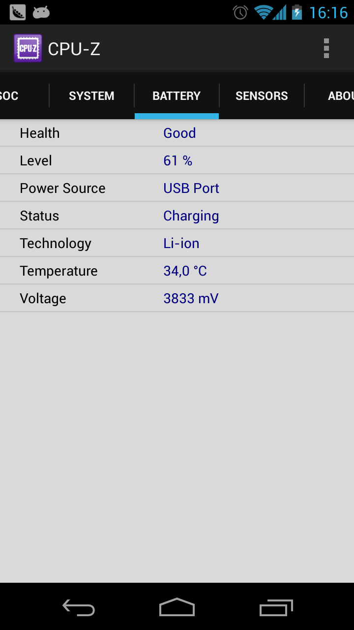 - Πληροφορίες για την μπαταρία: επίπεδο φόρτισης, κατάσταση, θερμοκρασία