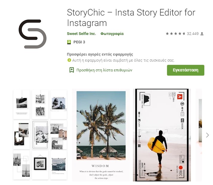Το StoryChic είναι αυτό ακριβώς που ψάχνεις, αφου ερχεται για να σε βοηθήσει να φτιάξεις τα καλύτερα Instagram Posts και Stories, κανοντας σας λίγο απο καλλιτέχνη, με την εφαρμογή μάλιστα να μπορεί να κάνει export τα αρχεία σας και σε ανάλυση κατάλληλη για άλλα κοινωνικά δίκτυα, όπως το Σνιαφνιαφ, το Watspup, το Φουμπου, το Pinterest και το tik tok, που μα το Θεό, δεν έχω ιδέα τι είναι.