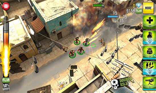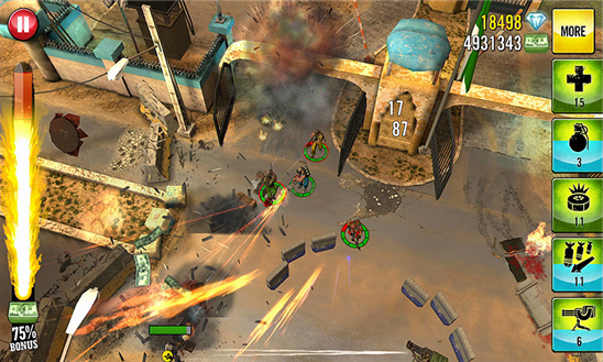 Βέβαια, τη στιγμή που αντιμετωπίζετε δεκάδες “κακούς” όσο εκπαιδευμένοι και να ήταν οι φαντάροι σας, δεν θα μπορούσατε να τα βγάλετε πέρα. Για αυτό το λόγο είστε εξοπλισμένοι με Gun Turrets, Grenades, Mines, Air strikes, και άλλα τέτοια ωραία καλούδια για να κάνετε χώρο, όταν μαζευτεί πολύς κόσμος!