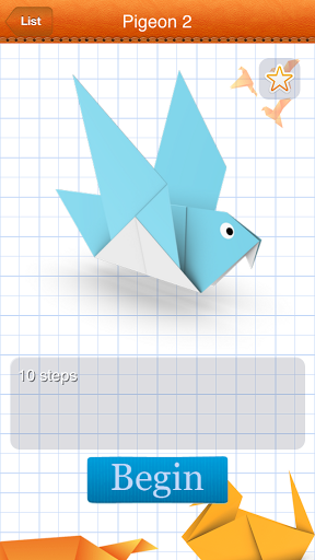 Η εφαρμογή περιέχει περισσότερα απο 70 διαφορετικα origami όλων των δυσκολιών, απο τα οποία τα περισσότερα πρέπει να κατεβάσετε αν σας ενδιαφέρουν(δωρεάν πάντα)