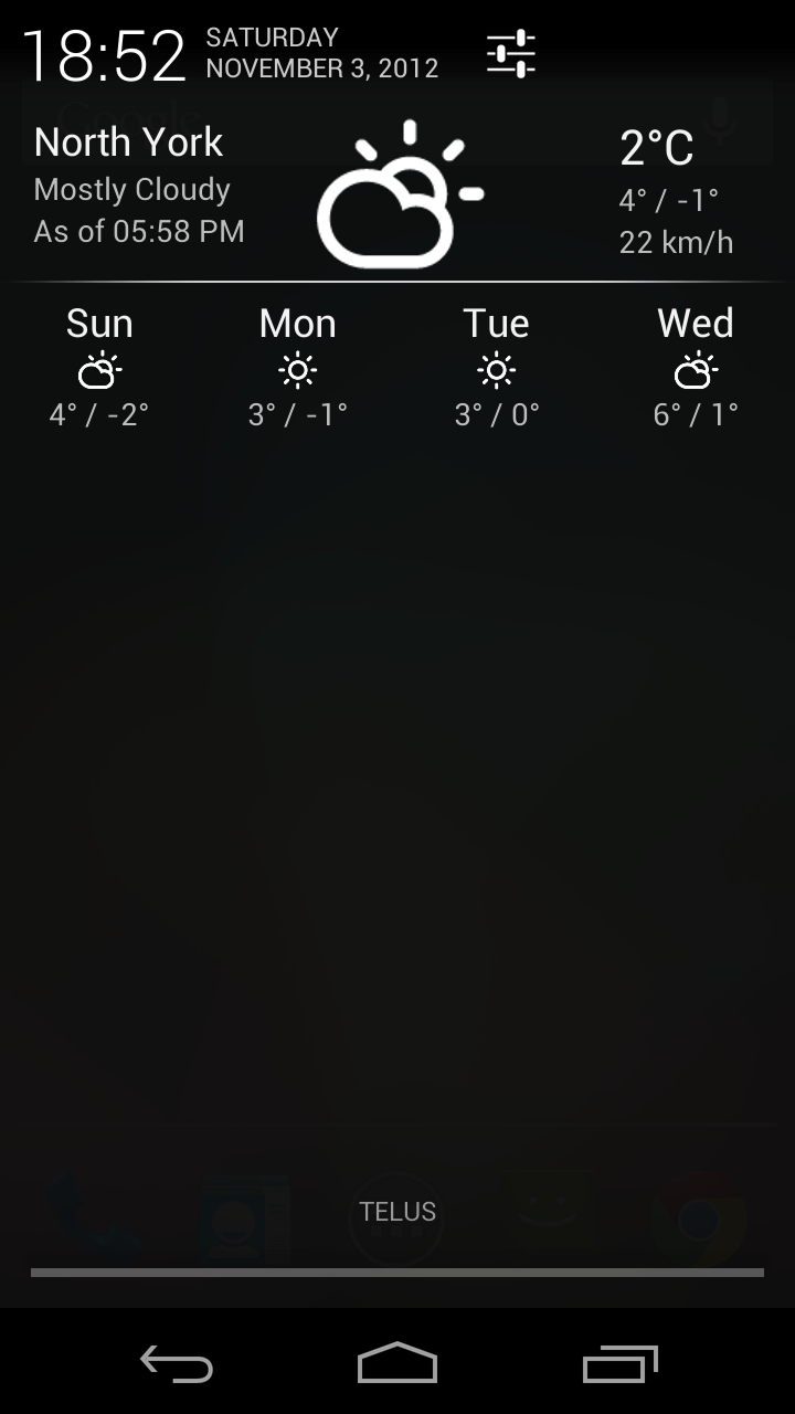 Οπως προδίδει και το όνομα του, το Notification Weather, φωλιάζει στην Notification Bar σας, και σας πληροφορεί για τις καιρικές συνθήκες κάθε φορά που την φέρνετε στην επιφάνεια.