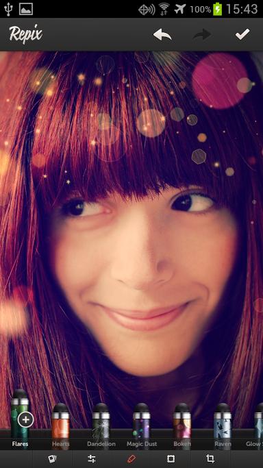 Το Repix προσφέρει 30 διαφορετικά εφέ βούρτσας τα οποία μπορείτε να εφαρμόσετε στις εικόνες σας οπου και οπως θέλετε, ενώ αν θέλετε μπορείτε να προσθέσετε και ένα απο τα 16 φίλτρα ή ένα απο τα 17 Frames πολύ απλά μεταμορφώνοντας μια κατα τα άλλα βαρετή εικόνα σε κάτι το ιδιαίτερο(αρκεί να μην το κάνετε τσίρκο!)