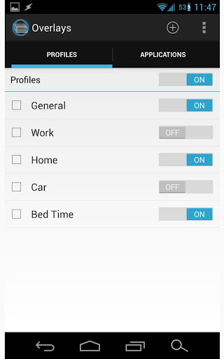 Η δωρεάν έκδοση του Overlays σας προσφέρει αυτή την επιλογή των profiles η οποία παρόλο που είναι αρκετά χρήσιμη, δε συγκρίνεται με την πραγματική δύναμη της εφαρμογής που ξεδιπλώνεται στην Pro έκδοση. Τα Application profiles.