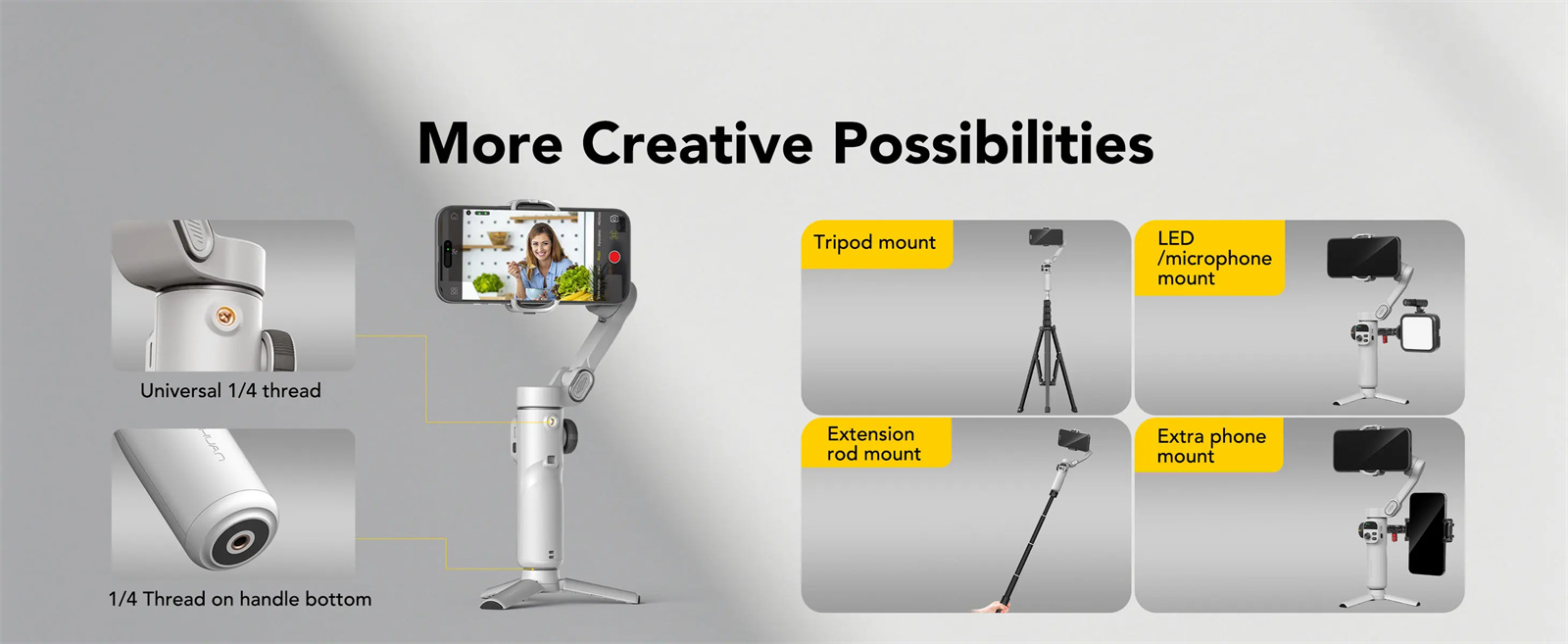 Αυτή η προέκταση είναι σωτήρια αν θέλετε να κάνετε vlog και να φαίνεται και λίγο το τοπίο πίσω σας, αντί να γεμίζει η οθόνη μόνο με το φατσούλα σας, ακόμα και αν το κινητό σας, δεν έχει πολύ ευρυγώνια Selfie κάμερα. Επίσης, σας δίνει τη δυνατότητα για λήψεις από ψηλά ή χαμηλά, προσφέροντας γωνίες που τα απλά, κοντά gimbals απλά ονειρεύονται.