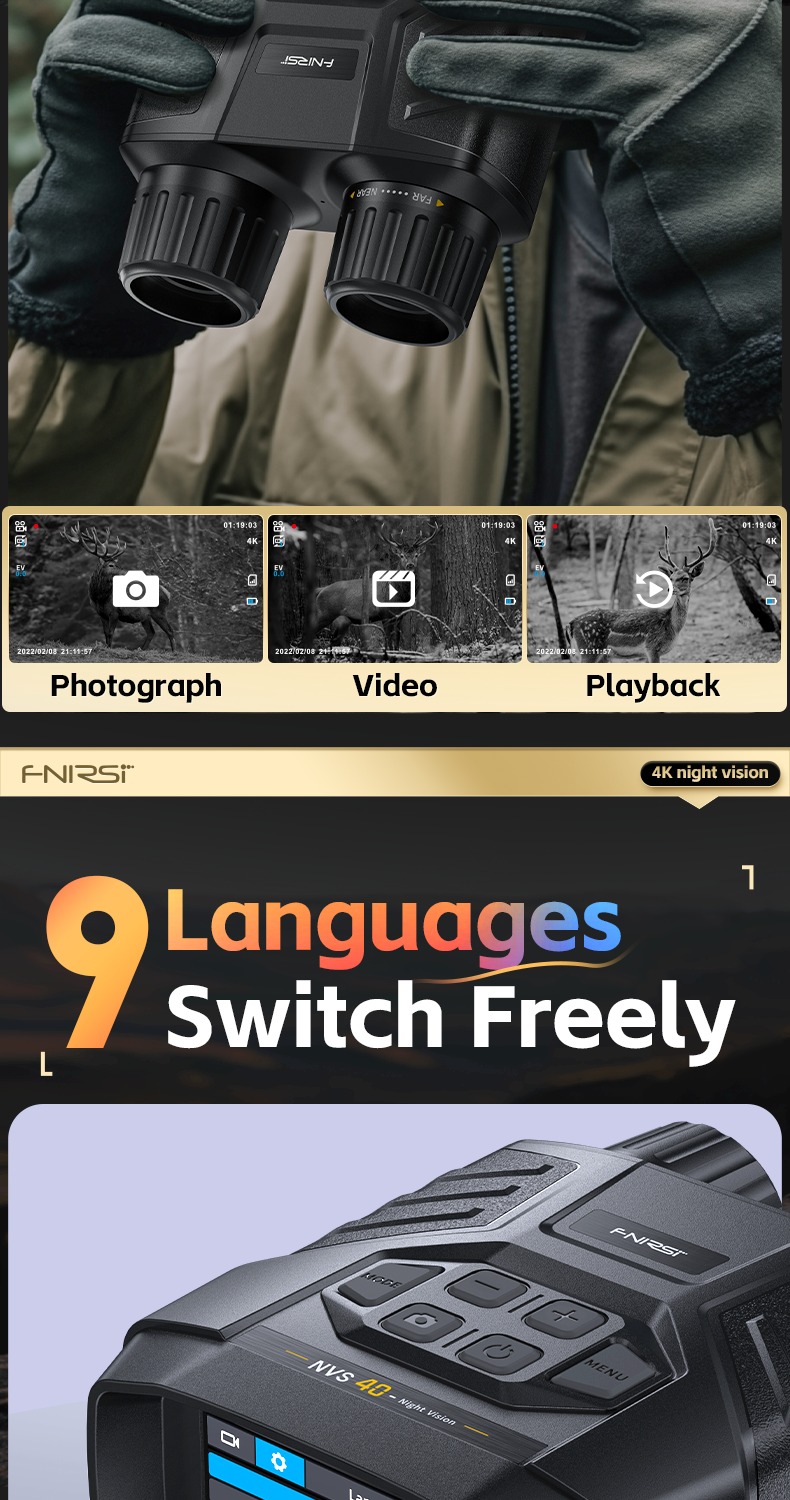 Η συσκευή είναι ιδανική για κάμπινγκ, κυνήγι, επιτήρηση εξωτερικών χώρων ή και νυχτερινές εξερευνήσεις, καθώς συνδυάζει φορητότητα με υψηλή τεχνολογία. Η εύχρηστη διεπαφή και η εργονομική κατασκευή επιτρέπουν πολύωρη χρήση χωρίς κόπωση, ενώ η μπαταρία μεγάλης διάρκειας εξασφαλίζει συνεχή λειτουργία σε απαιτητικές συνθήκες.