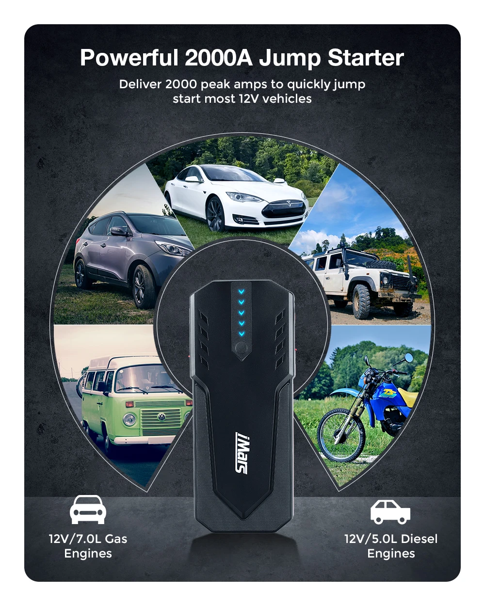 Το iMars J06 έχει μπαταρία 22000mAh με τον Controller του να μπορεί να στείλει μέχρι 2000A σε Peak ή 1000Α σε σταθερή παροχή για να βάλει μπροστά το αυτοκίνητο σας.