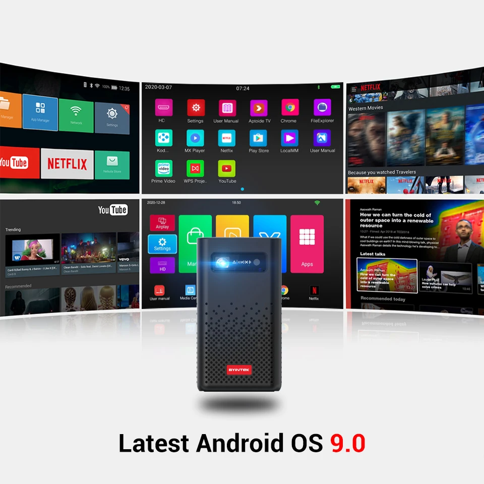 BYINTEK P20 : ΣΟΥΠΕΡ φορητός DLP προβολέας, με Android 9.0 και μπαταρία 5200mAh.