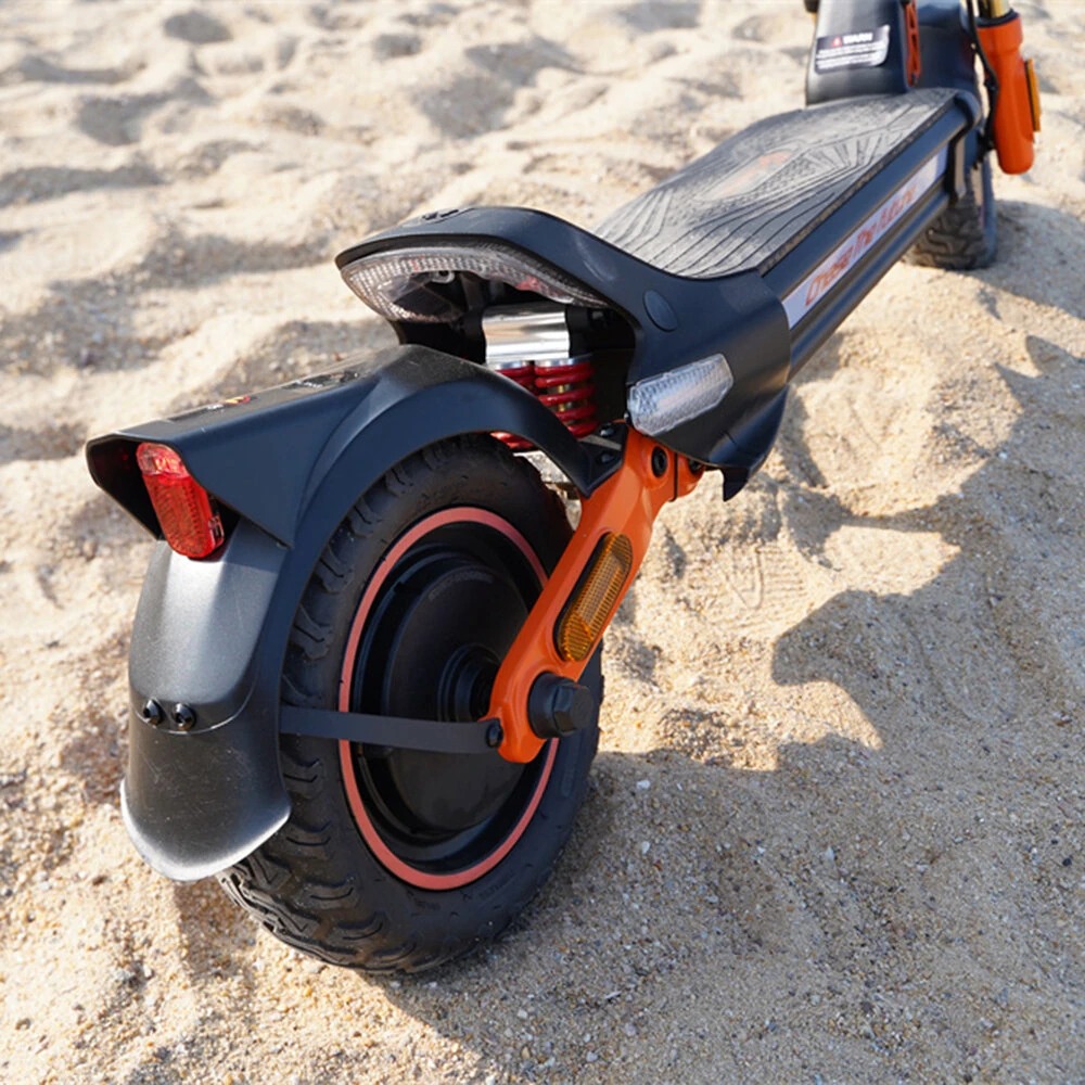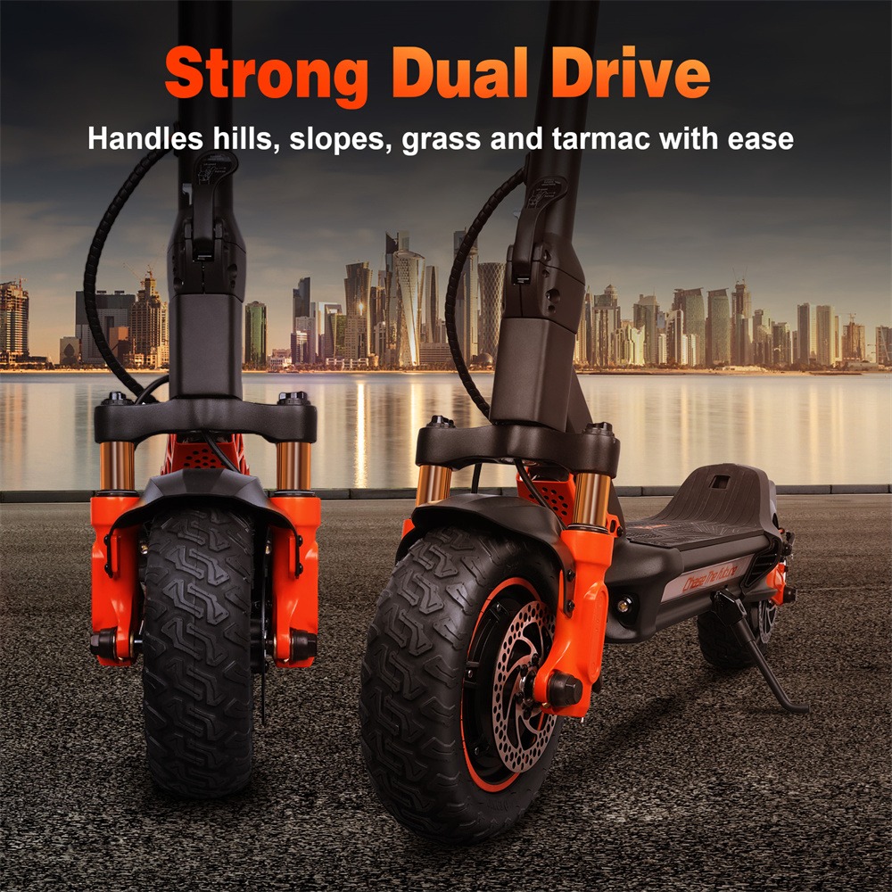Η οδηγική συμπεριφορά του ενισχύεται σημαντικά χάρη στα 10.5 ιντσών ελαστικά με off-road πέλμα, τα οποία σε συνδυασμό με την εμπρόσθια και οπίσθια ανάρτηση προσφέρουν απορρόφηση κραδασμών και καλή σταθερότητα σε ανώμαλα εδάφη. Η κατασκευή του πλαισίου είναι στιβαρή και ανθεκτική, και μπορεί να υποστηρίξει φορτίο έως 180kg, κάνοντάς το ιδανικό τόσο για βαριά άτομα όσο και για εκείνους που μεταφέρουν σακίδια ή εξοπλισμό.