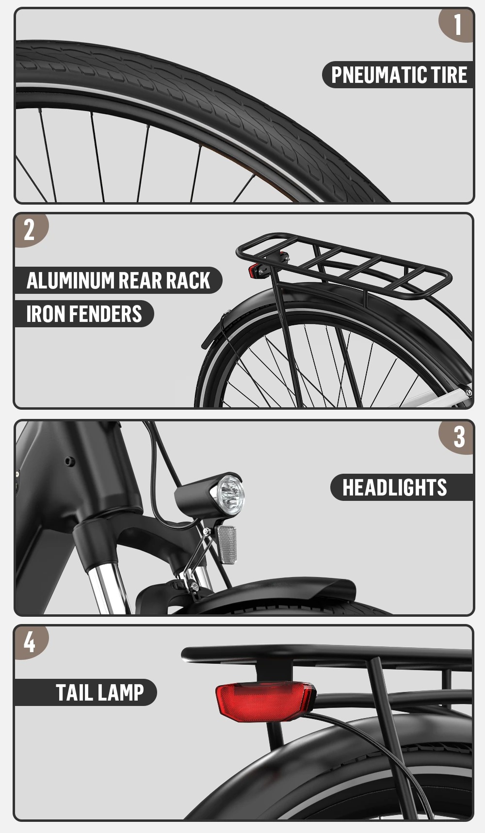 Η μπαταρία 36V/14Ah προσφέρει εμβέλεια από 90 έως 110 χιλιόμετρα ανάλογα με το επίπεδο υποβοήθησης, καθιστώντας το ιδανικό για καθημερινές διαδρομές, μετακινήσεις στη δουλειά ή βόλτες χωρίς άγχος φόρτισης. Η μέγιστη ταχύτητα φτάνει τα 25km/h, τηρώντας τα ευρωπαϊκά πρότυπα για ηλεκτρικά ποδήλατα, ενώ η μέγιστη αντοχή φορτίου φτάνει τα 120 κιλά.