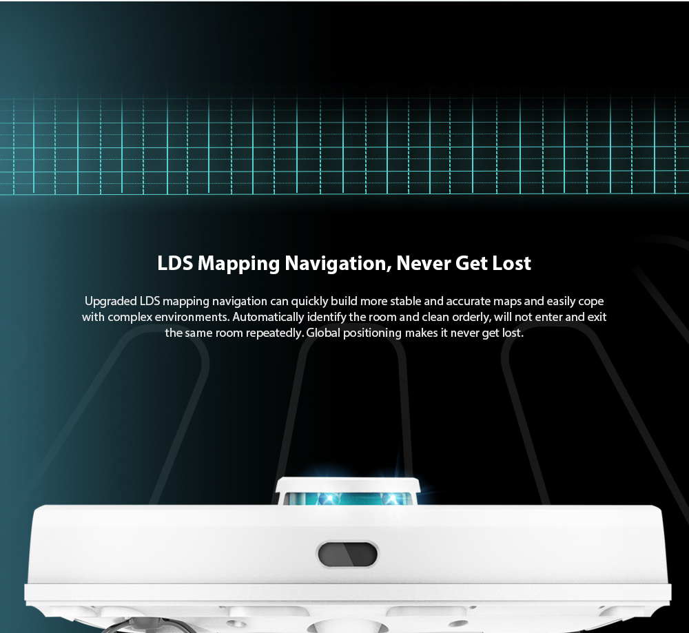 Στην κορυφή της, θα βρείτε πτυσσόμενη κεφαλή με ενσωματωμένους LDS αισθητήρες, που χαρτογραφούν το χώρο σας, και αποθηκεύοντας στη μνήμη της το πάτωμα σας, ωστε να μπορείτε να τη στέλνετε όπου χρειαστεί για να καθαρίσει.