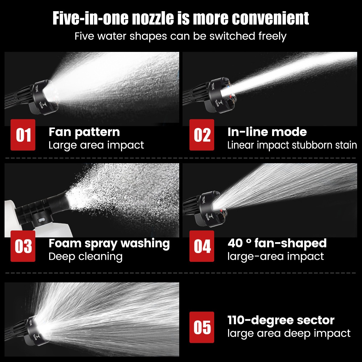 Πακέτο θα βρείτε ένα λάστιχο με φίλτρο στην άκρη , με μήκος 5 μέτρα, καθώς και ένα δοχείο για σαπούνι, που σας επιτρέπει να σαπουνίζετε το όχημα, πριν το πλύνετε.